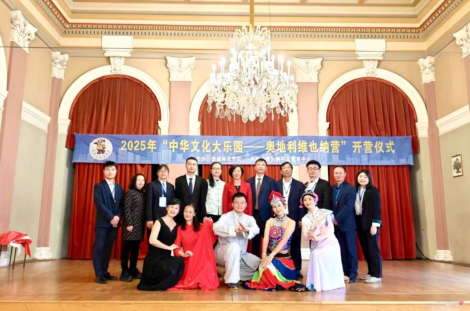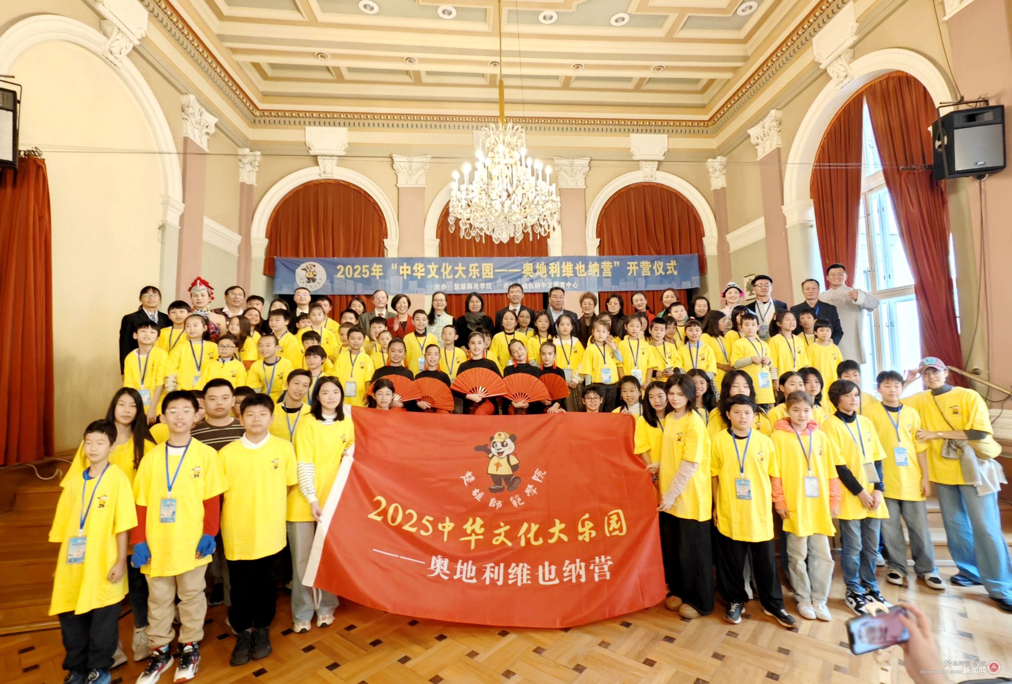 10月25日,由楚雄师范学院主办、维也纳中文教育中心承办的“中华文化大乐园——奥地利维也纳营”活动在奥地利首都维也纳开营。中国驻奥地利大使馆领事部主任刘洋,维也纳大学孔子学院院长雷佩克,侨领、奥地利联邦政府经济参事陈安申,奥地利龙舟协会会长杨陈旭红,奥地利华人妇女联合会会长、维也纳中国文化艺术中心主席、华星艺术团团长谢飞茹,维也纳中文教育中心校长张晓梅,楚雄师范学院教师团队、营员和学生家长代表参加开营仪式。